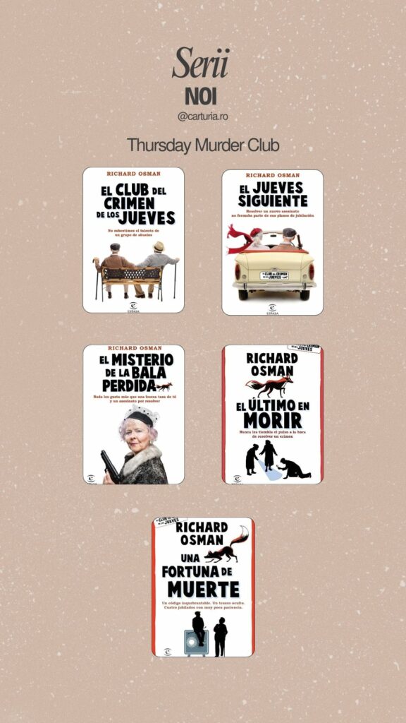 Cea de-a treia serie pe listă este Clubul crimelor de joi de Richard Osman, pe care intenționez să o citesc în spaniolă, în format electronic. Am mai așteptări de la bătrâneii investigatori, așteptări create după ce am văzut opiniile din online. Am înțeles că avem și ecranizarea primului volum. Inteționez să văd și eu filmul după ce citesc cartea.