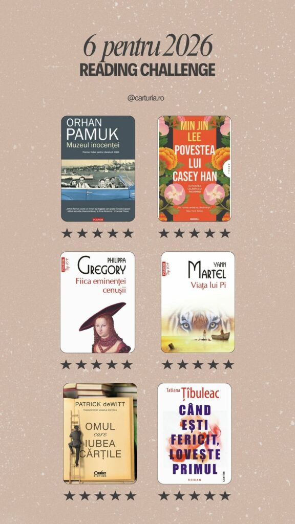 Acestor titluri, li se adaugă noi provocări. Urmez aceleași categorii ca în anul precedent: 6 pentru 2026 (înlocuiește 12 months 12 books), autori români, clasici, cărți în limba engleză, cărți în limba spaniolă și catalană și cărți de non-ficțiune.